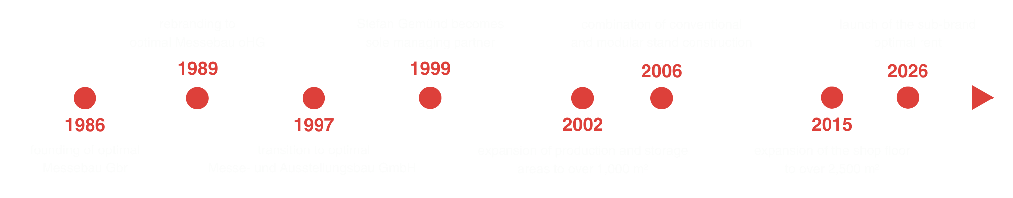 Since its founding in 1986, optimal Messebau has stood for well thought-out concepts, craftsmanship with precision, and distinctive brand experiences with substance. What began 40 years ago as a vision is now a trusted partner for companies that see exhibition stand construction not as a standard solution, but as a strategic tool for brand positioning. The trade show world has continuously evolved — from classic stand concepts to holistic brand experiences.